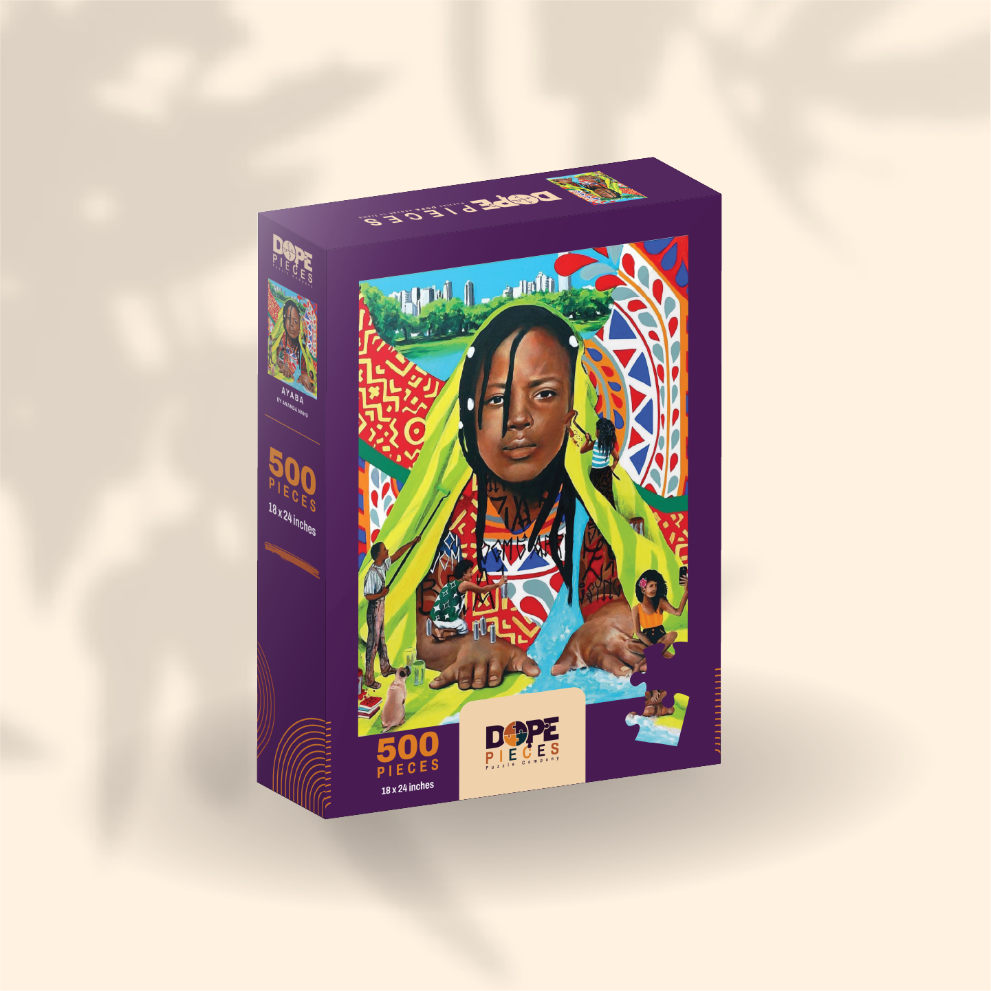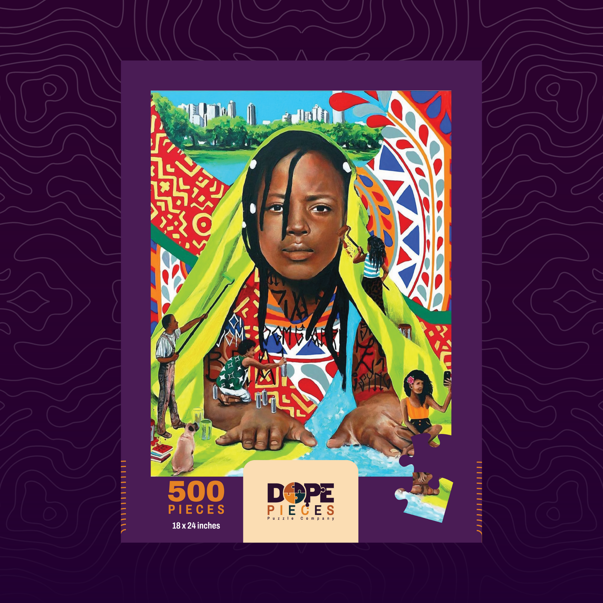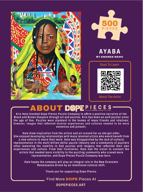 Created in partnership with Bloomberg this piece is a celebration of the awakening of Black consciousness in Brazil, this puzzle is full of color and creativity. Ayaba by Dope Pieces Artist Ananda Nahu is a 500-piece jigsaw puzzle that measures 18 x 24 inches and is dope enough to frame.