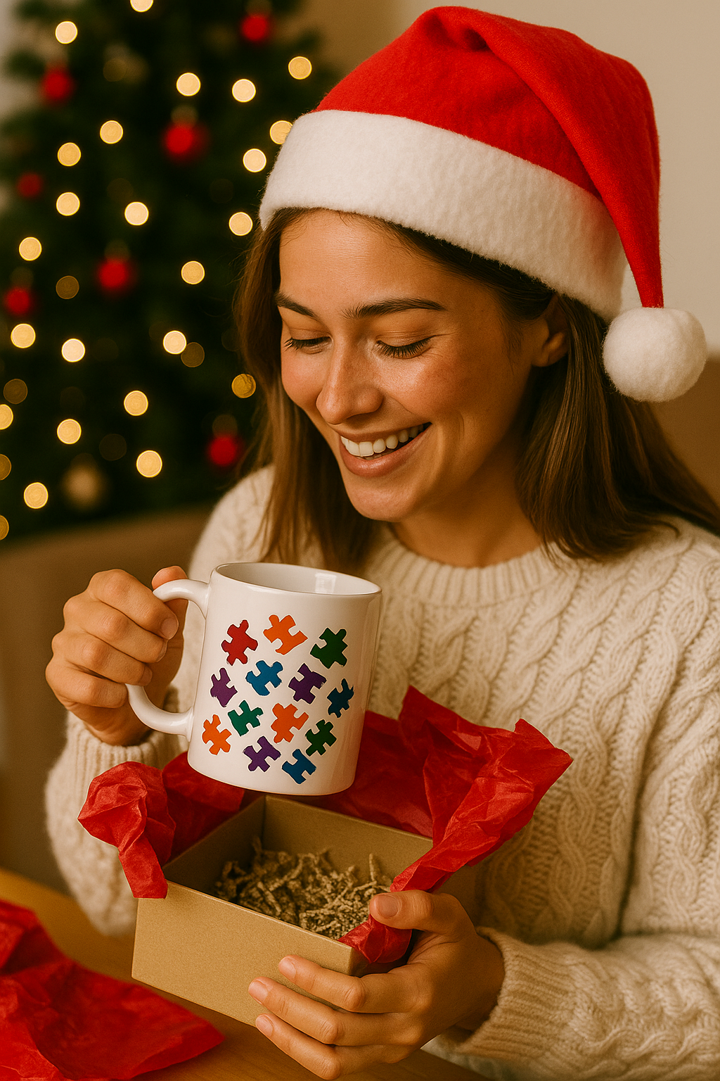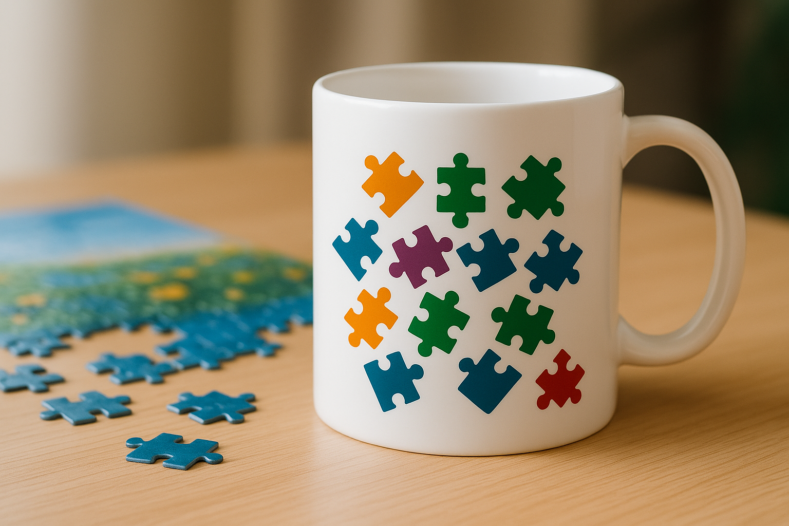 Bright, fun, happy — this mug feels like a celebration of every piece you’ve ever connected. Perfect for the playful puzzler, the color-lover, or anyone who needs a little sparkle with their morning tea.