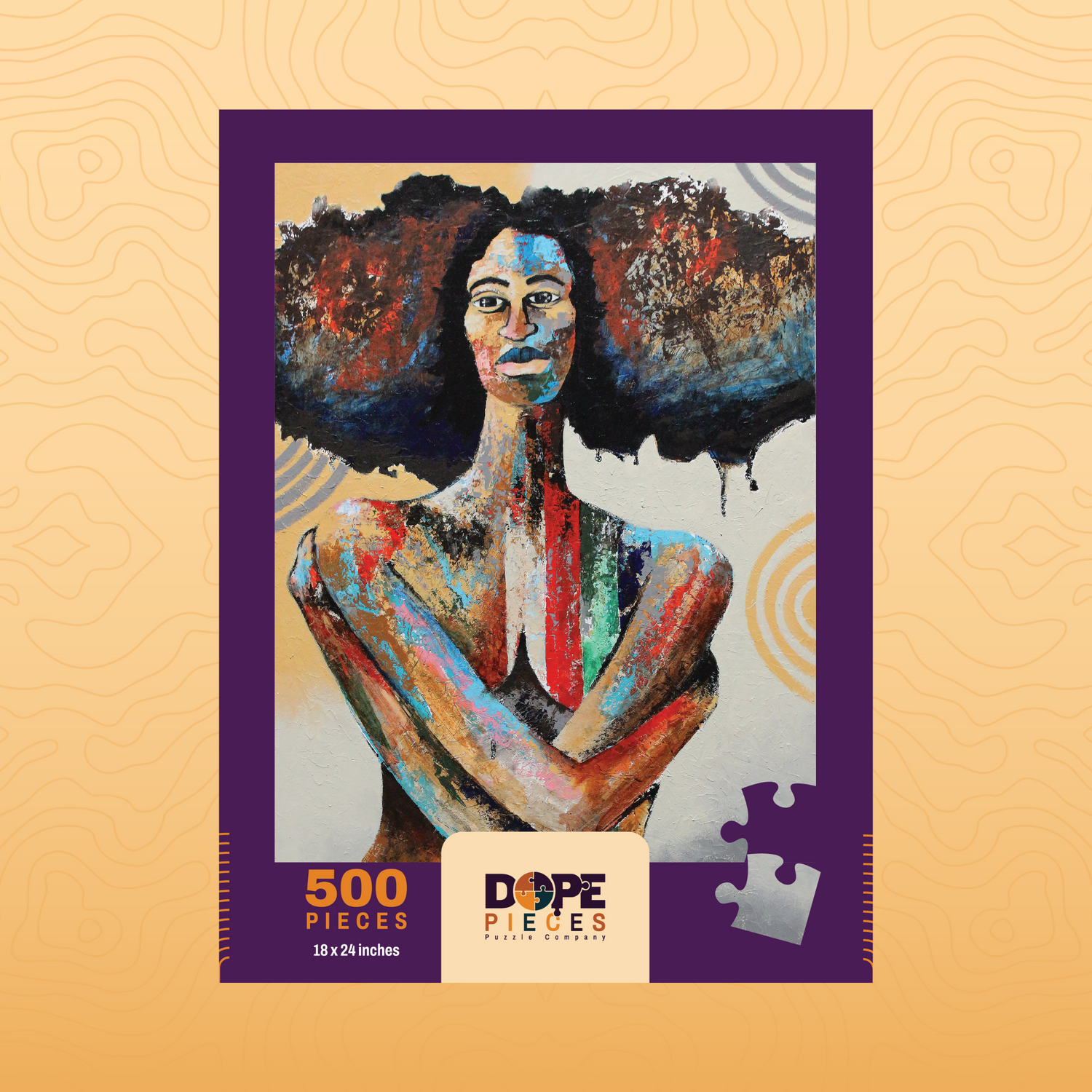 She is beautiful, inside and out. When we are deeply rooting in who we are on the inside everything on the outside will come together. Two Reflections by Dope Pieces Artist Dante Yarbrough. This is a 500-piece jigsaw puzzle that measures 18 x 24 inches, and is dope enough to frame.